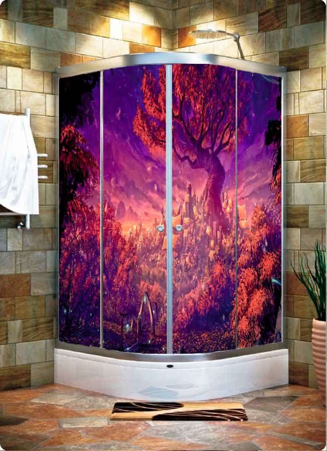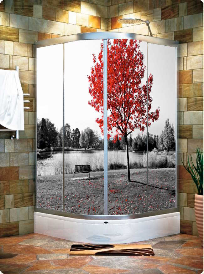 3Boyutlu Kendinden Yapışkanlı KIRMIZI AĞACLI Model 4 Camlı Duşakabin Kaplama Folyosu