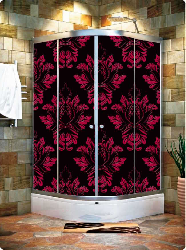 KIRMIZI SARI GRİ KUMAŞ EFECKT DESEN ÇİÇEK DUŞAKABİN CAMI KAPLAMA