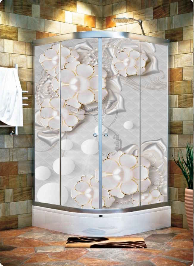 GÜMÜŞ GRİ İNCİ ÇİÇEK DESEN DUŞAKABİN CAMI KAPLAMA