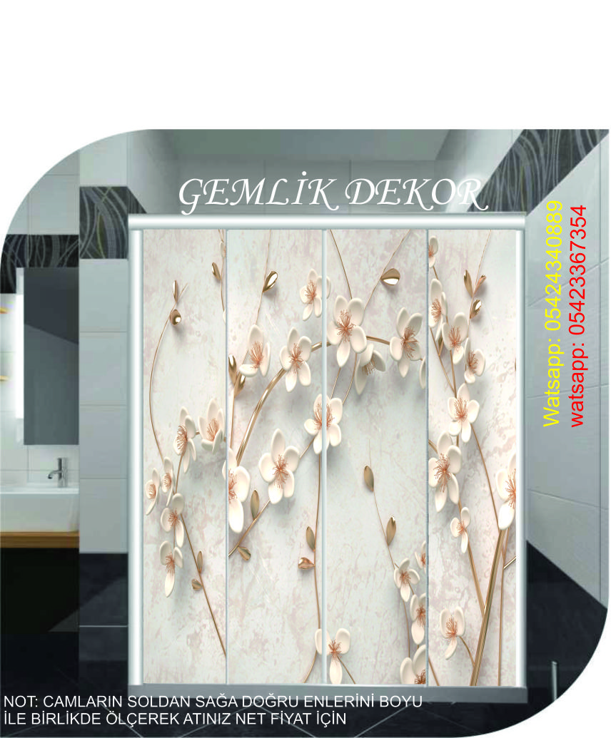 MODERN ÇİÇEK DESEN DUŞAKABİN CAMI KAPLAMA