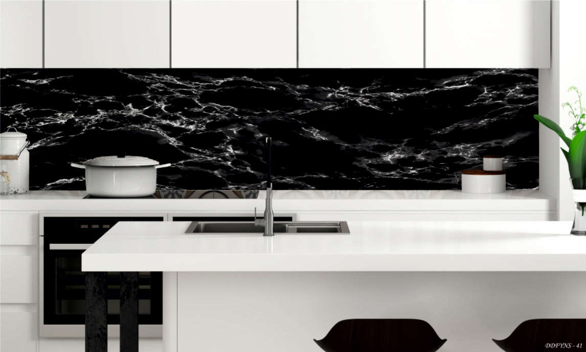 SİYAH MERMER DESEN MUTFAK ARASI KAPLAMA