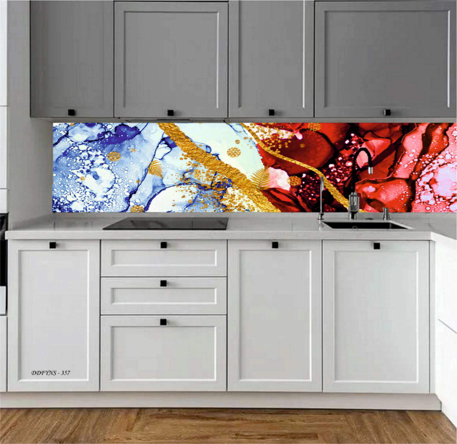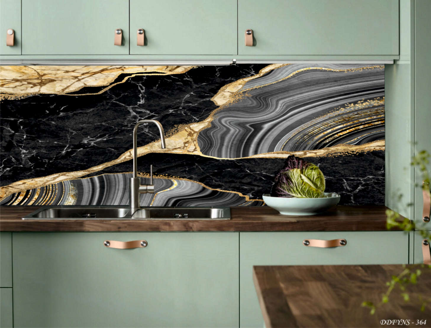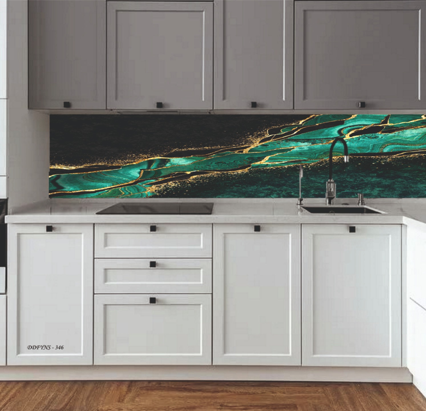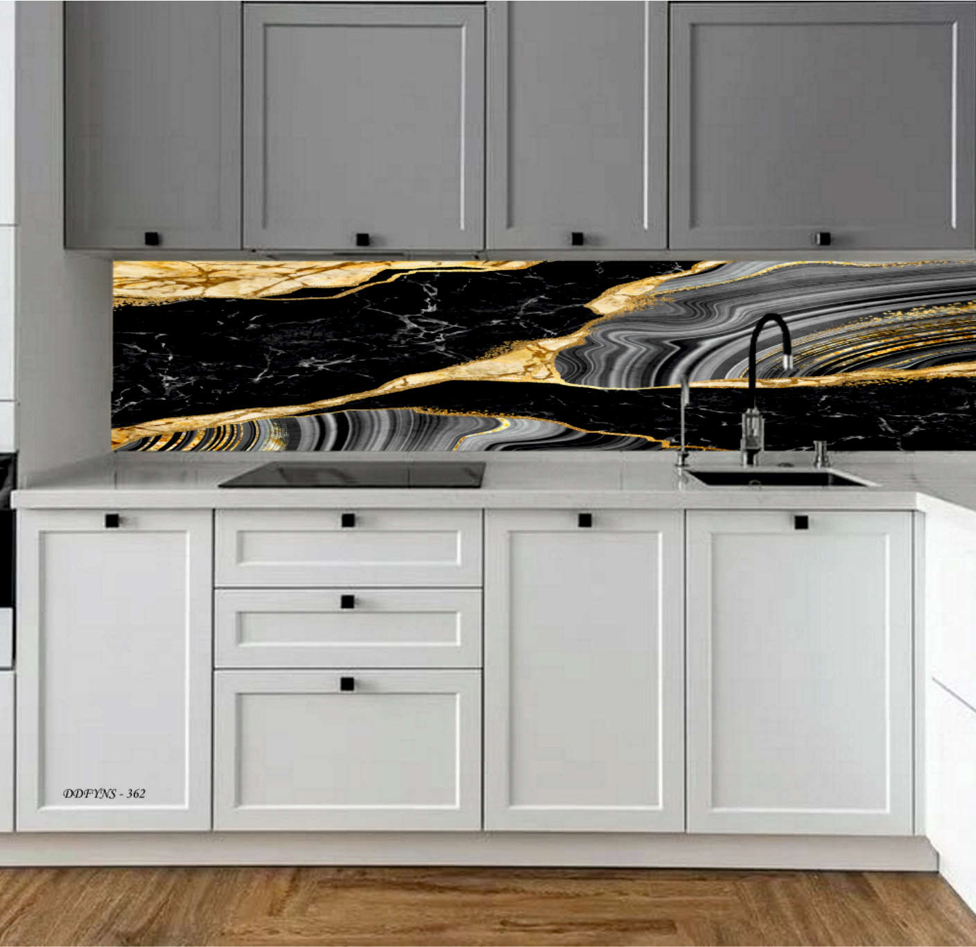 MERMER DESEN TEZGAH ARASI KAPLAMA SİYAH-GRİ-GOLD