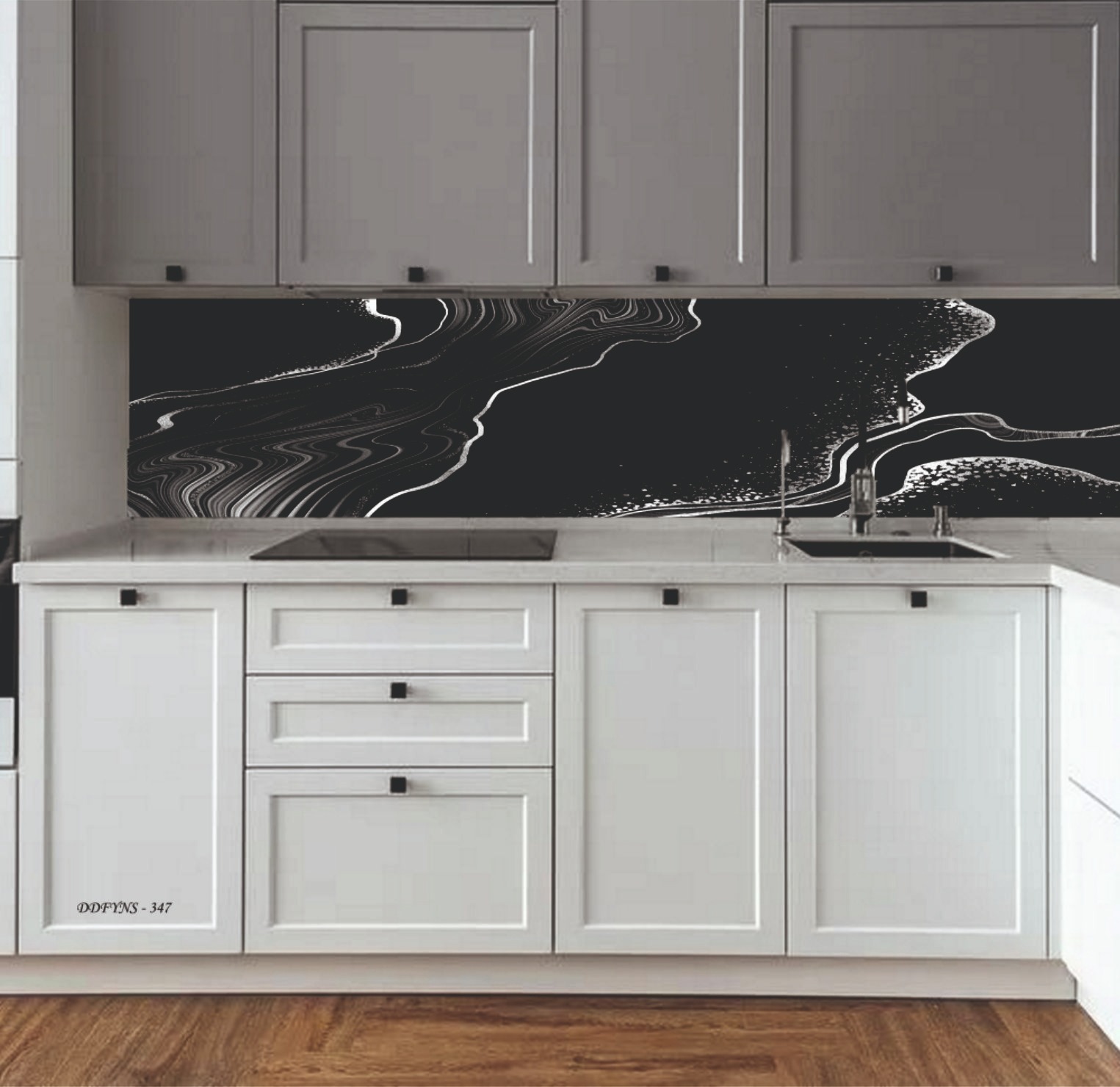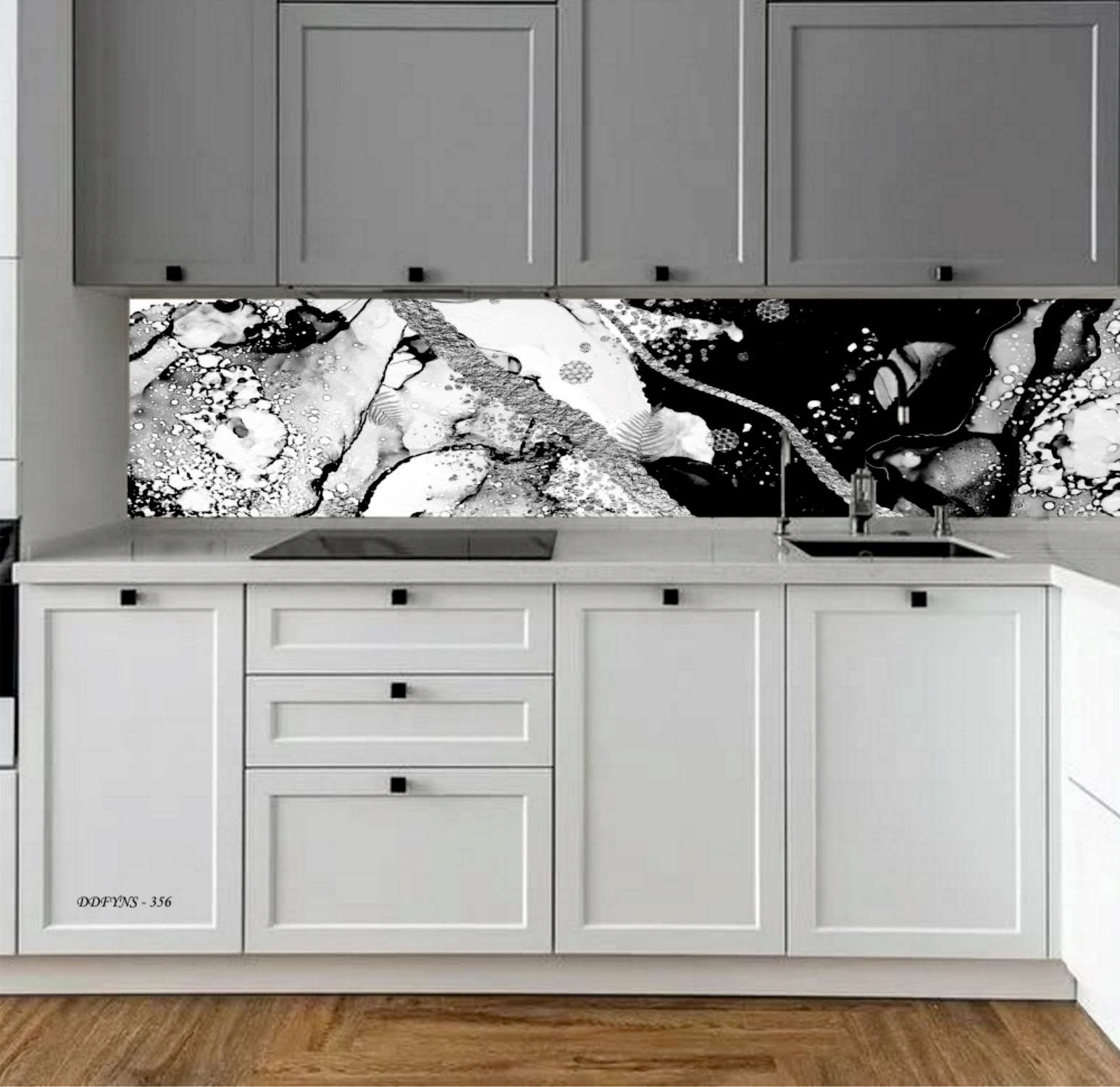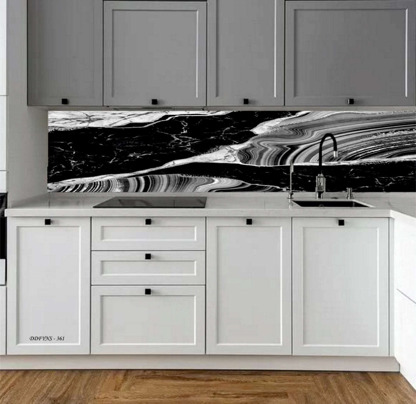 MERMER DESEN TEZGAH ARASI KAPLAMA SİYAH BEYAZ