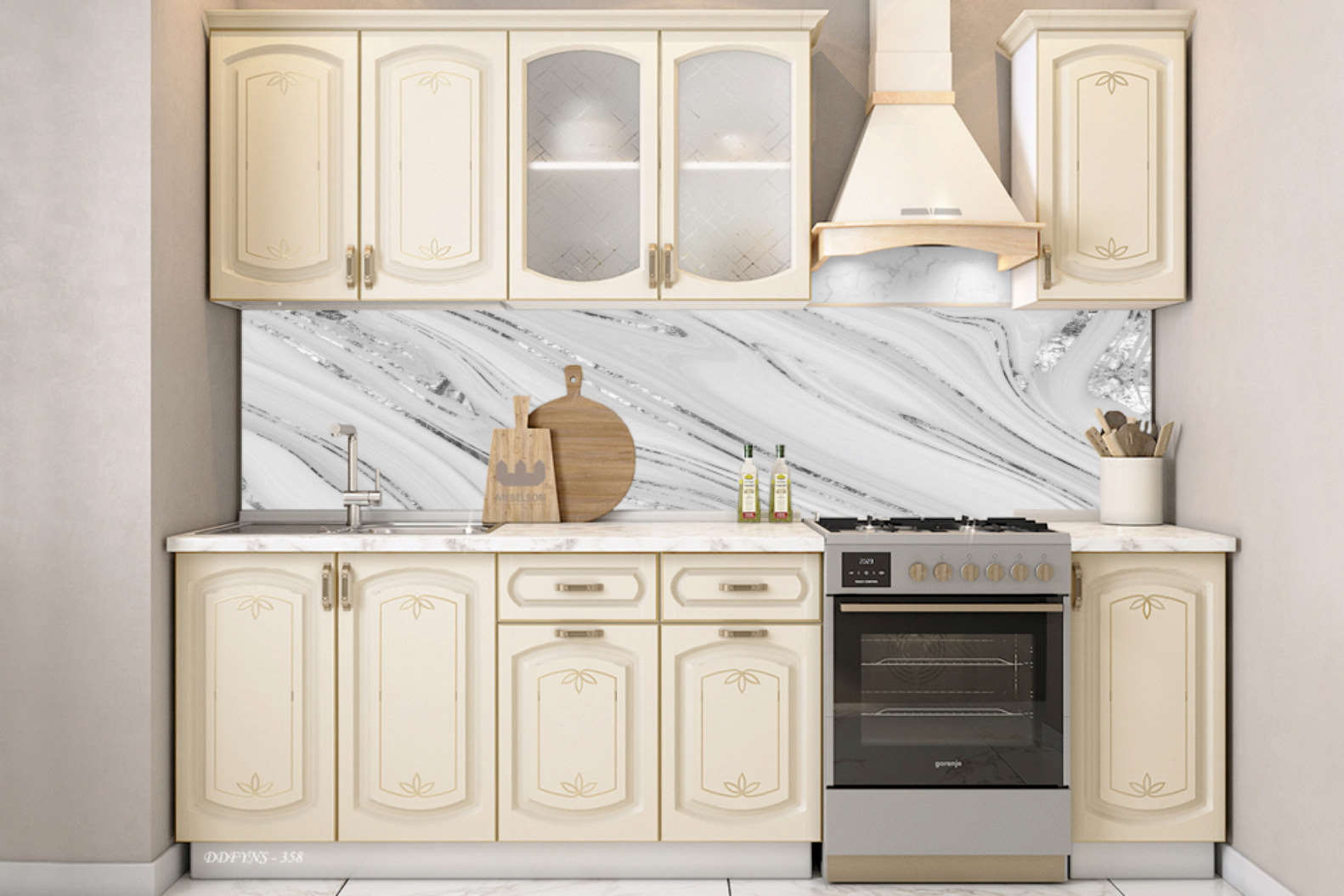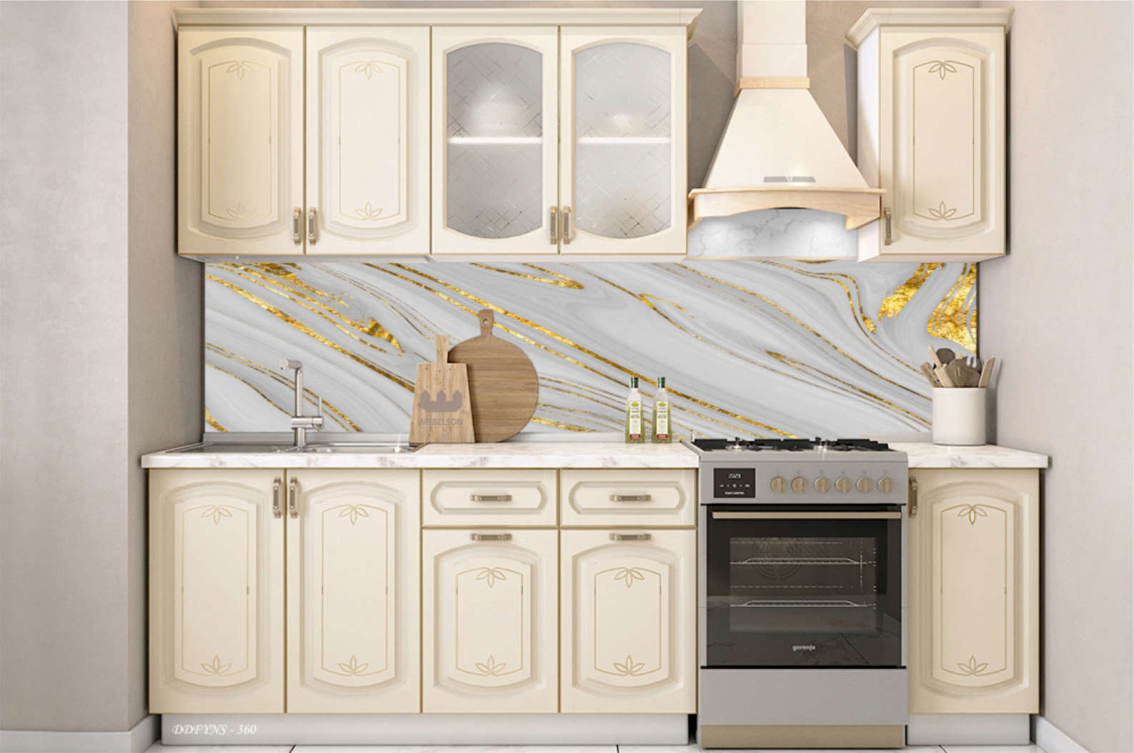 MERMER DESEN TEZGAH ARASI KAPLAMA BEYAZ-GOLD
