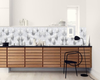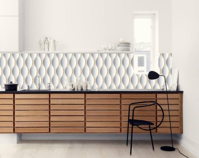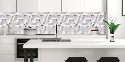 3Boyutlu Kendinden Yapışkanlı Beyaz Geometrik Model Mutfak Arası Folyo Kaplama