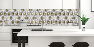 3Boyutlu Kendinden Yapışkanlı Tezgah Arası Folyo Kaplama Kırık Beyaz Gold Geometrik Model