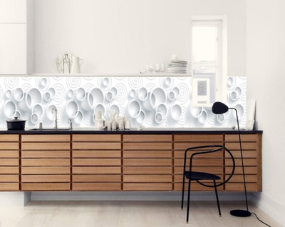 3Boyutlu Kendinden Yapışkanlı BEyaz Renk Kabartma Efektli Geometrik Çemberler Model Tezgah Arası Folyo Kaplama