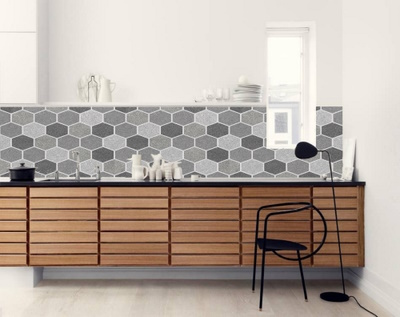 3Boyutlu Kendinden Yapışkanlı Tezgah Arası Folyo Kaplama Gri Tonları Altıgen Geometrik Desen