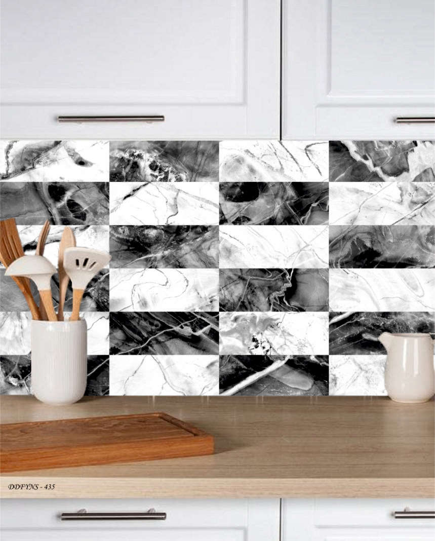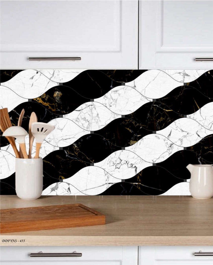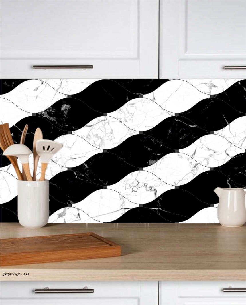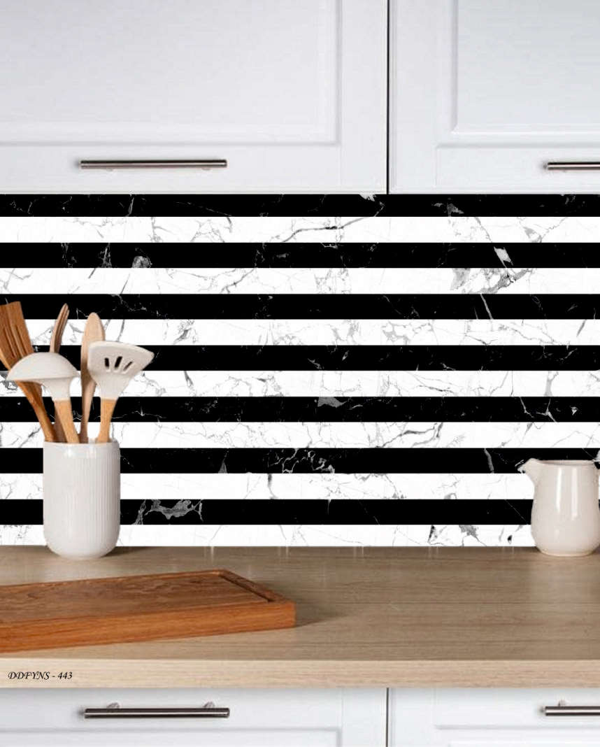 SİYAH BEYAZ YATAY ÇİZGİLİ TEZGAH ARASI KAPLAMA