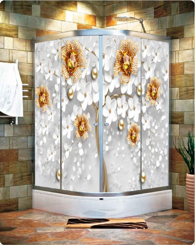 GOLD ÇİÇEK AWANGART DESEN 3Boyutlu Kendinden Yapışkanlı Duşakabin Kaplama Folyosu