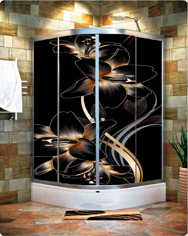 SİYAH GOLD SÜERLÜX MODERN ÇİÇEK 3Boyutlu Kendinden Yapışkanlı Duşakabin Kaplama Folyosu