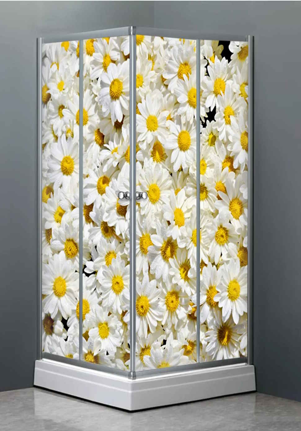 PAPATYA ÇİÇEK DESENLİ 3Boyutlu Kendinden Yapışkanlı Duşakabin Kaplama Folyosu