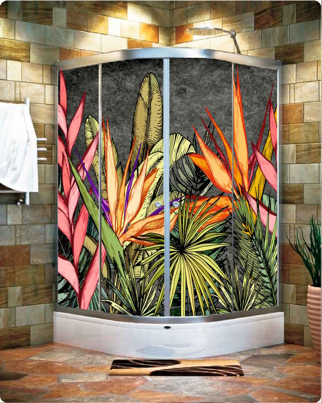 TROPİCAL SARKIK YAPRAKLI DESEN 3Boyutlu Kendinden Yapışkanlı Duşakabin Kaplama Folyosu