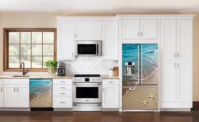 Kendinden Yapışkanlı 3Boyutlu Kumsal Sahil Deniz Yıldızlı Deniz Manzaralı Beyaz Eşya Kaplama Folyosu