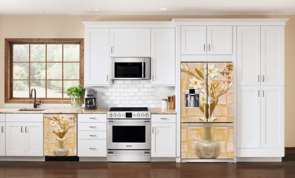 Kendinden Yapışkanlı 3D Vazoda Çiçekler Lüx Model Beyaz Eşya Kaplama Folyosu