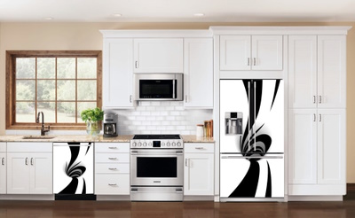 Kendinden Yapışkanlı 3Boyutlu Siyah Beyaz Çizgisel Derinlik Çukur Model Beyaz Eşya Kaplama Folyosu