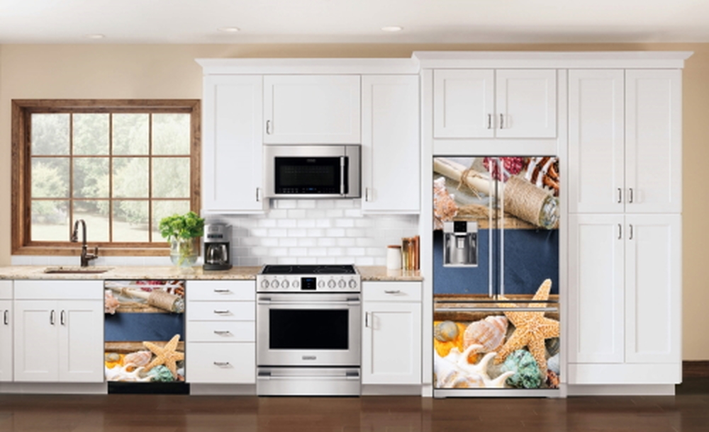 Kendinden Yapışkanlı Beyaz Eşya Kaplama Folyosu Kumsal Deniz Kabukları Model