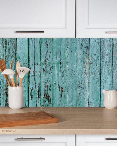 3Boyutlu Kendinden Yapışkanlı Su Yeşili Eskitme Ahşap Model Tezgah Arası Folyo Kaplama