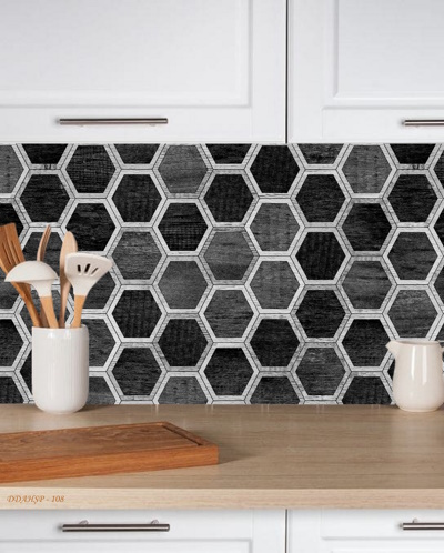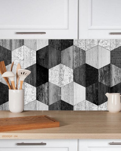 3Boyutlu Kendinden Yapışkanlı Tezgah Arası Folyo Kaplama Gri Tonlarında Altıgen Geometrik Ahşap Model