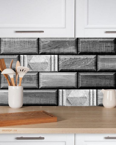 3Boyutlu Kendinden Yapışkanlı Tezgah Arası Folyo Kaplama Gri Ahşap Desen Tuğla Model