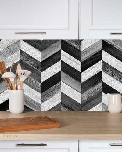 3Boyutlu Kendinden Yapışkanlı Tezgah Arası Folyo Kaplama Gri Tonlarında Balıksırtı Ahşap Desen Model
