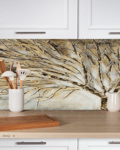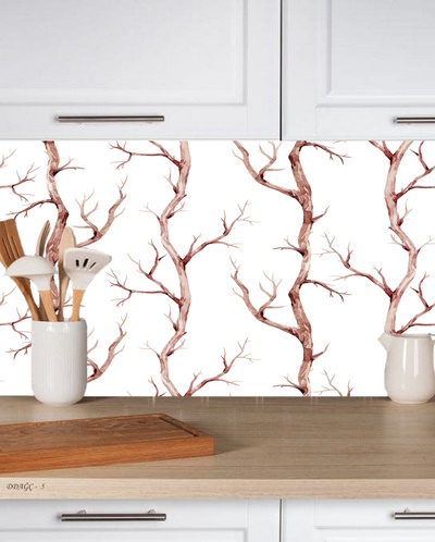 3Boyutlu Kendinden Yapışkanlı Tezgah Arası Folyo Kaplama Ağaç Gövde Dalları Pattern Model