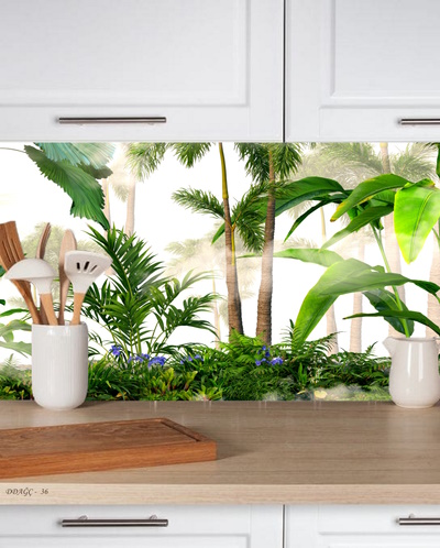 3Boyutlu Kendinden Yapışkanlı Tropikal Ağaçlı Yapraklı Orman Model Tezgah Arası Folyo Kaplama