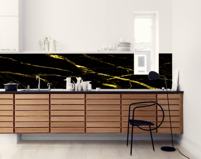 3Boyutlu Kendinden Yapışkanlı Tezgah Arası Folyo Kaplama Siyah Renk Gold Detaylı Mermer Desen