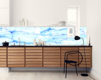 3Boyutlu Kendinden Yapışkanlı Tezgah Arası Folyo Kaplama Mavi Beyaz Mermer Desen