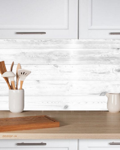 3Boyutlu Kendinden Yapışkanlı Tezgah Arası Folyo Kaplama Açık Gri Kırık Beyaz Ahşap Desen Yatay Tahtalar Model