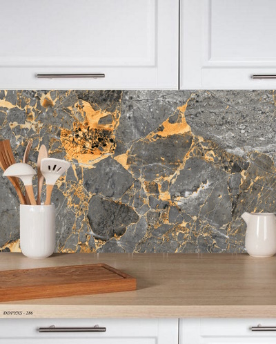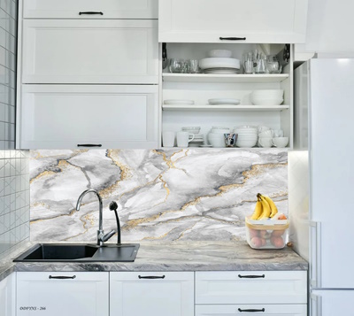 3Boyutlu Kendinden Yapışkanlı Tezgah Arası Folyo Kaplama Gri Beyaz Tonlarında Gold Detaylı Mermer Granit Model