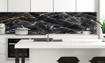 3Boyutlu Kendinden Yapışkanlı Tezgah Arası Folyo Kaplama Siyah Renk Beyaz Gold Damarlı Mermer Desen