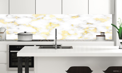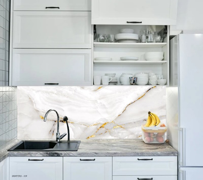 3Boyutlu Kendinden Yapışkanlı Tezgah Arası Folyo Kaplama Beyaz Gold Buğulu Efekt Mermer Desen