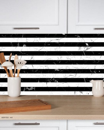 3Boyutlu Kendinden Yapışkanlı Siyah Beyaz Yatay Çizgili Mermer Desen Tezgah Arası Folyo Kaplama