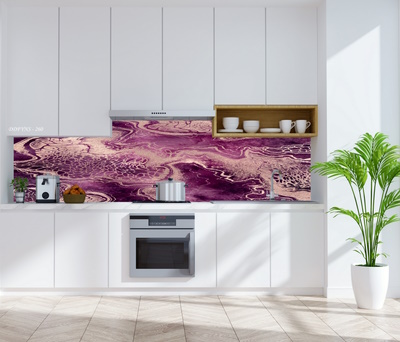 3Boyutlu Kendinden Yapışkanlı Tezgah Arası Folyo Kaplama Mor Tonlarında Ebruli Mermer Desen