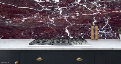 3Boyutlu Kendinden Yapışkanlı Tezgah Arası Folyo Kaplama Bordo Beyaz Mermer Granit Model
