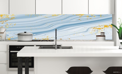 3Boyutlu Kendinden Yapışkanlı Tezgah Arası Folyo Kaplama Mavi Beyaz Gold Detaylı Mermer Granit Model