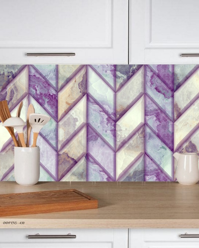 3Boyutlu Kendinden Yapışkanlı Tezgah Arası Folyo Kaplama Mor Krem Suluboya Efektli Balıksırtı Model